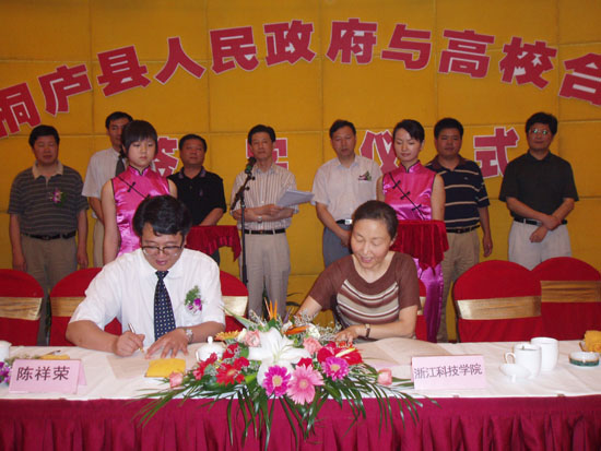6月21日,我校党委委员、纪委书记鲁凤同志和学生处领导参加了桐庐县人民政府与高校合作签字协议。桐庐县是全国百强县之一,与我校有着长期的毕业生就业合作关系。近几年来,我校每年都组织毕业生参加桐庐县人才招聘会,为桐庐县输送毕业生。在原有合作基础上,为进一步增强合作,扩大合作范围,双方决定签订建立就业实习培训基地合作协议。