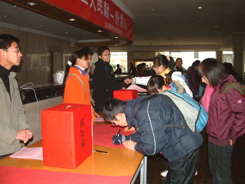 2004年12月26日的海啸地震给南亚、东南亚地区人民带来了沉重的灾难。突如其来的“世纪之灾”牵动着整个世界人民,也牵动了我校一万二千多名师生。1月4日,在学校团委的号召下,一场“关爱生命——为南亚、东南亚地区受海啸灾难的人民献一份爱心”的大规模捐款活动在校宾馆大厅展开。中午12点,宾馆捐款现场人头攒动,伴随着歌曲《爱的奉献》,学校党委书记徐志平、学校党委副书记胡浙平带头捐款。学校学工部、团委、现教中心等各部们的老师也纷纷解囊,紧接着各班级、各支部也纷纷赶到现场,随着捐款人数的增多,宽敞的宾馆大厅出现了短暂的拥挤。众人拾柴火焰高,同学们纷纷表达自己的爱心。许多学生捐了款后坚决不留下姓名,“只要人人都献出一点爱,世界将会变成美好的人间”是大家的共同心声。捐款活动将持续三天,届时所有捐款所得将送往浙江慈善总会,并由他们转交给灾区人民。