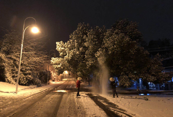 8日晚,校园积雪深度达到8CM,树枝已有明显积雪后弯压现象,后勤服务部领导班子带领党员、各中心骨干以及24小时留守待命的后勤员工在西和学生公寓、行政楼、图书信息大楼、各教学区开展人工树木敲雪工作,经过3小时的奋战,校园内主干道行道树、重点区域香樟等无明显积雪。为确保校区道路畅通,后勤组织人员于9日早上7点进行扫雪,根据雪情与地面结冰情况做好道路打雪、铲雪、除冰工作。对校园绿化进行巡查,根据积雪情况继续采取人工敲雪等措施,防止出现积雪低温凝冻累积,造成压断树枝危害师生、影响交通安全等情况。(后勤服务部 罗丹霞)