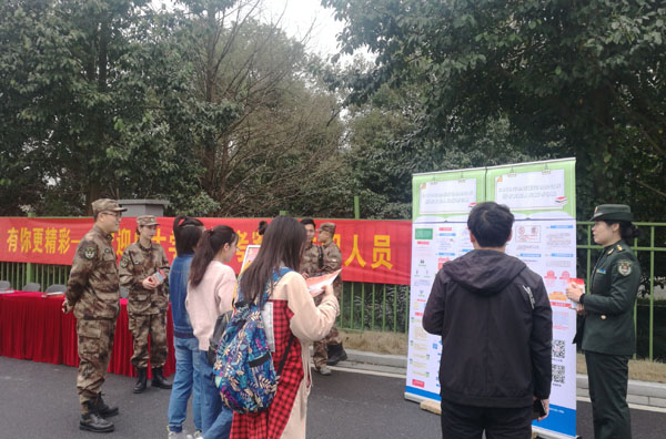 部队工作人员向过往师生介绍了此次招考的基本情况、岗位设置、福利待遇及招考的标准条件程序,并对同学们关心的问题进行了解答。根据安排,3月13日至20日,报名人员可以通过军队人才网报名,4月28日全军组织统一考试。考试内容包括公共科目和专业科目,各科目考试范围、内容和具体要求已在军队人才网公布。