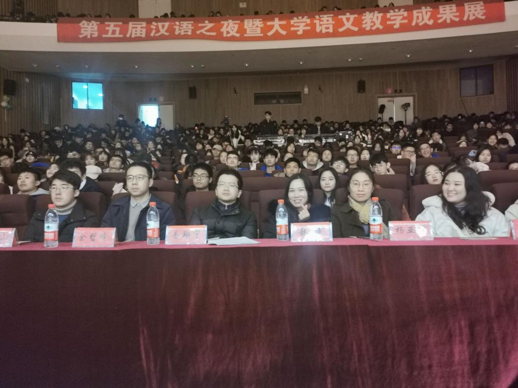 12月26日晚,第五届“汉语之夜”暨大学语文教研成果展在安吉校区大学生活动中心举行。安吉校区教学事务中心、人文与国际教育学院大学语文教研室、校大学生文化素质教育基地相关负责人及学生社团代表等1000多人一同观看了展演。