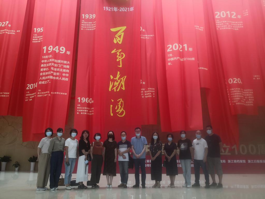 9月15日,图书馆档案馆直属党支部组织理论学习中心组(扩大)一行赴浙江省档案馆参观“百年潮涌——浙江省庆祝中国共产党成立100周年大型展览”。