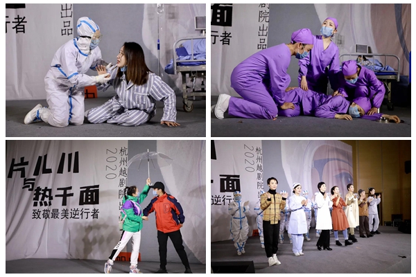 11月21日,“高雅艺术进校园”杭州越剧院现代越剧《片儿川与热干面》专场在我校上演,五百余名师生跟随杭州越剧院演员一起致敬疫情中的最美逆行者,感悟伟大抗疫精神。