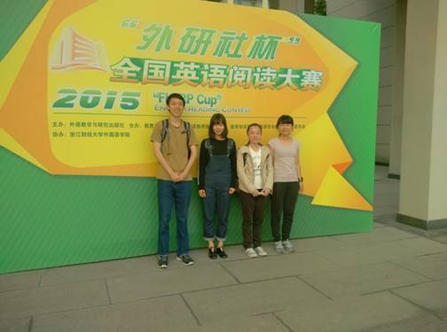10月24日,我校三名学生参加了在浙江财经大学院下沙校区举行的2015“外研社杯”全国英语阅读大赛浙江省复赛。