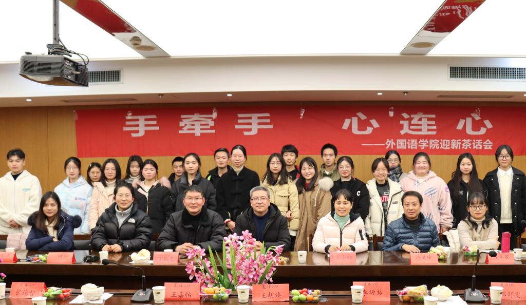 2021年12月30日晚,外国语学院2021级迎新茶话会在安吉校区举行。外国语学院党政班子与辅导员、2021级各班主任、大三大四校特优学风班班长代表和大一大二各班班委参加。会议由学院副院长方小卿主持,师生在新年来临之际,展望未来,总结过往,互相倾听。