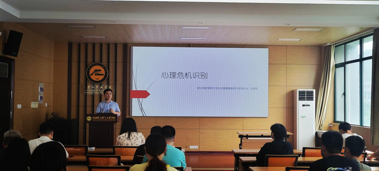 讲座主题为校园心理危机识别,王老师从心理危机的分类展开,并针对心理危机列举出了不同症状。王老师为各班心理委员普及了出现心里危机相关的表征以及需要重点关注的几种现象。会后同学们对自己身边的一些问题进行了提问,王老师一一为其解惑,希望同学们能处理好自己或身边朋友的心理问题。