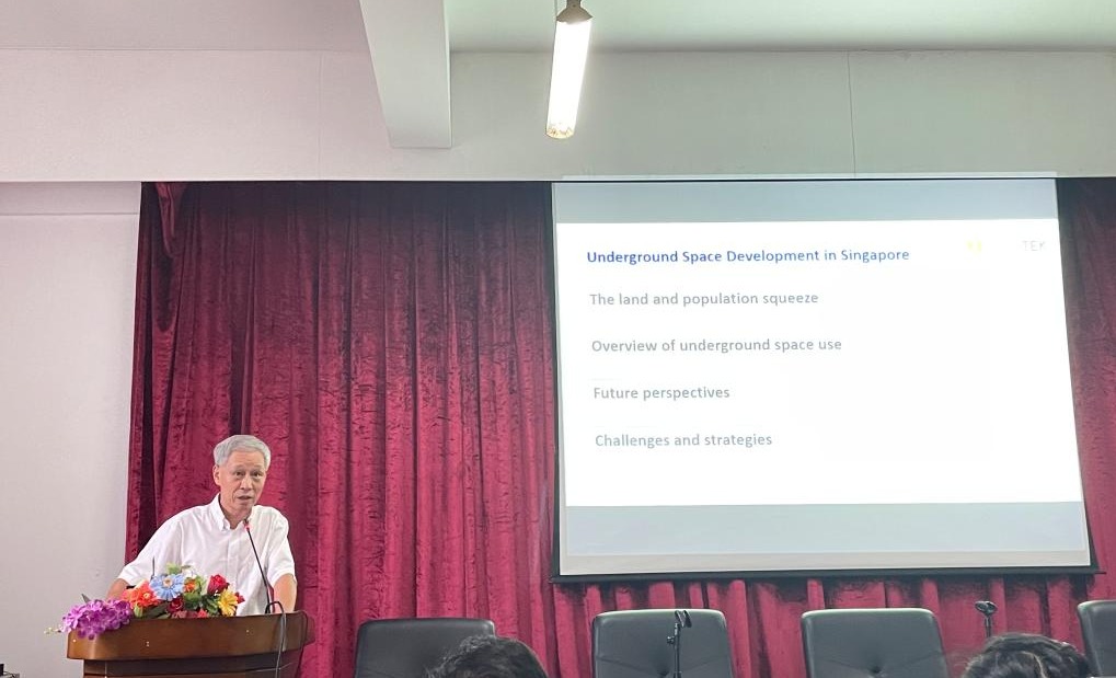 周迎新表示,当前地下资源开发虽然由于成本过高、规划复杂性等原因还无法被大范围推广,但地下空间利用仍然是满足可持续城市发展需求的重要资源和解决方案之一,具有极大潜力。他结合自己多年的工程经验,从填海造地、地下洞室、地下物流系统、雨水排污系统、地下排水储水系统等方面向与会师生详细介绍了新加坡的地下空间开发与利用。