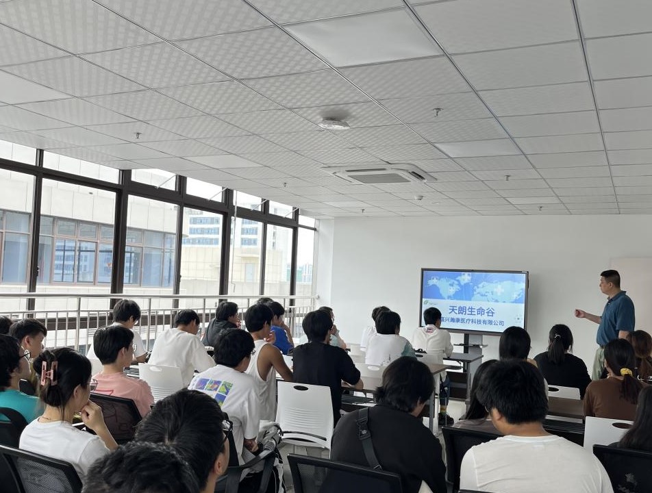 认识实习中,企业负责人为同学们作题为“生物制药与医疗器械发展趋势”的专题讲座,生产主管带领学生参观2条在运营的生产线。