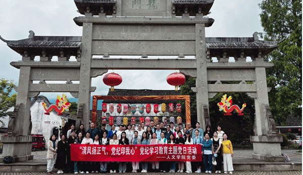 6月6日下午,人文学院组织师生党员、拟发展对象共46人赴浙江省廉洁文化教育基地-龙门古镇孙氏文化村开展党纪学习教育主题党日活动。